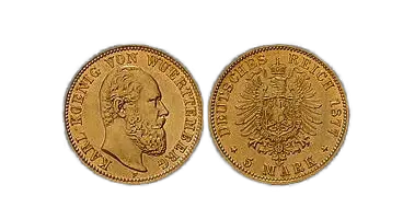 In the numismatic domain, there are numerous coins that have caught the attention of forgers because of their value to collectors. They try to imitate the coins by imprinting them on their original material. This is no case of material forging, but the fraud is the imitation of the imprint and the attempt to sell these normally rare coins to collectors. Besides, restriking former circulation coins falls within this category. Especially the so-called “Hausmann forgings” (named after one of the forgers) of the 5 Mark Reichsgold coins circulate in enormous numbers (it is estimated that 95% of all of the 5 Mark Reichsgold coins are false). This kind of coin forging is often only detected by thorough examination and eventually by chemical analysis.